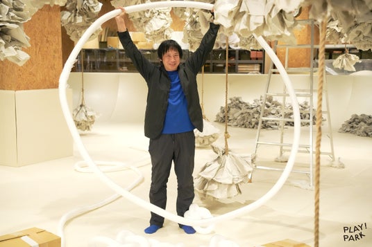 PLAY! PARK館長の手塚貴晴(手塚建築研究所・東京都市大学建築都市デザイン学部建築学科教授)監修のもと、「大きなお皿」を舞台に、建築資材のミナフォームマルマル(R)を天井から吊るして制作する大型遊具が誕生します。