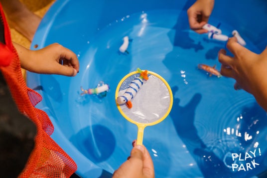 PLAY! PARKの名物〈大きなお皿〉を中心に、工具や道具を使ってものづくりができる〈ファクトリー〉、『はらぺこあおむし』の作者エリック・カールの絵本づくりを参考に、世界に1枚だけの色紙「PLAY! PAPER」が作れる〈絵の具コーナー〉など、計10個のエリアで遊べます。また、毎日日替わりで開催される赤ちゃん向け・小学生向けワークショップも人気です。