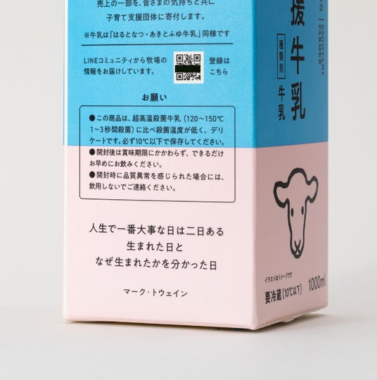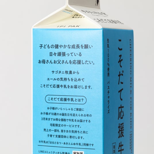 また、私たちは“子どもは社会で育てるもの”という考えを大切にしており、「こそだて応援牛乳」をお取りいただく皆さまの想いと共に、売り上げの一部を支援団体に寄付して参ります。こうした活動を通して、関わって下さる皆さまと一緒に社会課題を知り、少しでも力になれたらと考えています。第一弾は 認定NPO法人D×P への寄付を予定しています。