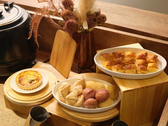 季節替わりのホテルメイドの焼き菓子や軽食、アルコール・ソフトドリンクを拡充し、滞在中いつでも利用可能に