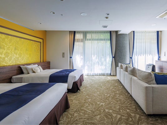 客室は旅の目的に応じた全8タイプ。天井が高く開放的で快適な客室(プレミアムツインルーム)