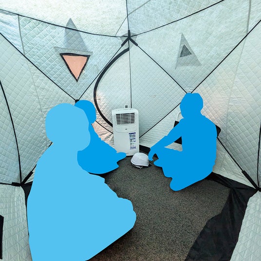 移動式エアコン(別売)を利用することで、外気温35℃時にテント内は約20℃に。(※)