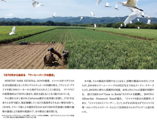 ワーシーパークは1670年創業。ジャマイカ・セントキャサリン教区の自社農園でサトウキビを育て、蒸溜・熟成・ボトリングまで一貫して手がける、数少ない“シングルエステート”のラムメーカーです。