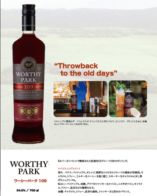 今回の受賞は、ワーシーパークが誇るシングルエステート製法と、100%ポットスチル蒸溜によるラムづくりへのこだわりが、世界のプロフェッショナルたちから高く評価された証です。