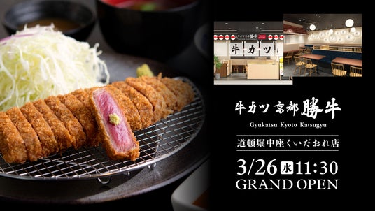 「京都から“牛カツ”を、世界の“GYUKATSU”へ。」をブランドミッションに掲げ、日本全国と海外8ヵ国に展開する店舗数日本一&世界一の牛カツ専門店*『牛カツ京都勝牛』(運営:株式会社ゴリップ、本社:京都府京都市)は、2025年3月26日(水)に「牛カツ京都勝牛 道頓堀中座くいだおれビル店」をグランドオープンいたします。
