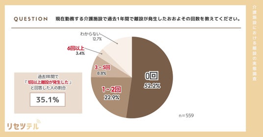 その結果、35.1%が「1回以上離設が発生した」と回答し、約3分の1の施設で離設が発生していることがわかりました。