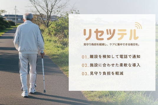 - 介護施設のみまもりと離設防止を強力にサポートする「リセツテル」