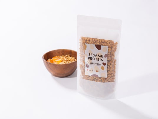 これまでも各企業で余ってしまう食材をアップサイクルし、新たな価値を創造する取り組みを行なってきましたが*1、この度、かどやと協業し、ごま油を作るときに生じる良質なたんぱく質(ごまの実ミール)を有効利用して、その香ばしさと栄養価の高さを生かしたグラノーラを作るという新たな可能性を切り拓きました。