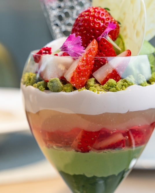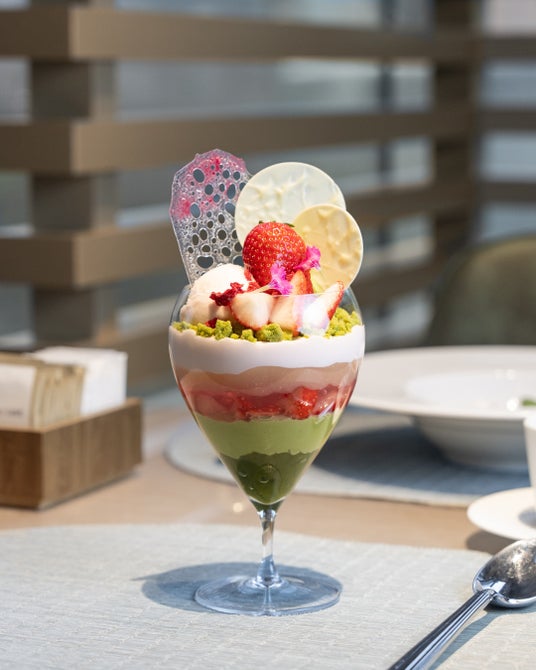 【アルマーニ / カフェ 表参道】春の訪れを味わう、4月限定「春色桜、いちご抹茶パフェ」