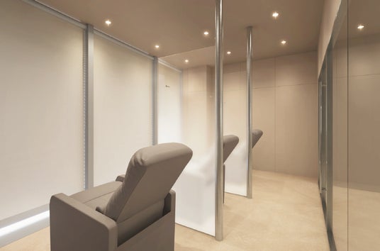 (3) 温もりのあるモダン空間店内は、心地よいミディアムベージュの色合いと、ガラスやステンレスの洗練された質感で構成されています。曲線がかかったネイルテーブルはダイナミックな動きのある空間を感じながらも、プライベート空間を確保。アイラッシュ・ネイルの同時施術が可能なスペースもご用意しております。