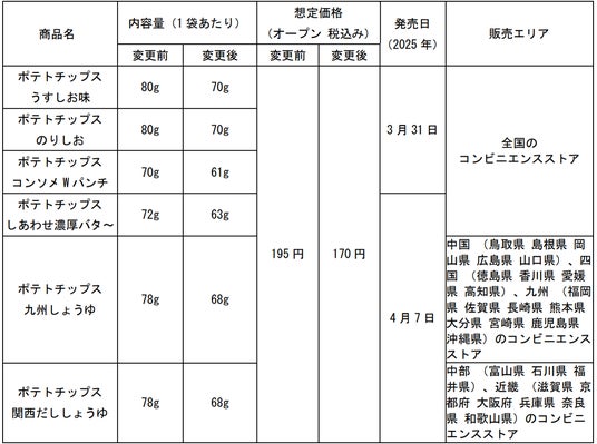 ※「ポテトチップス コンソメWパンチ」「ポテトチップス しあわせ濃厚バタ~」はコンビニエンスストア限定商品です。