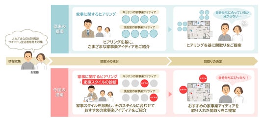 住む人の家事スタイルに合った「家事楽」※1の間取りの提案手法(従来比較)
