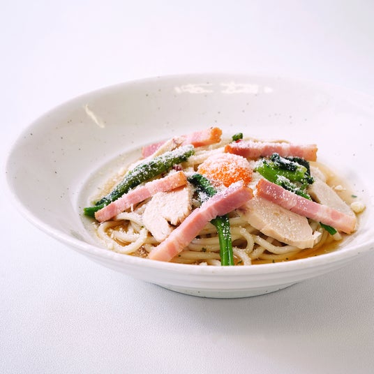 パスタに合う食材のたまごと鶏肉。それらの素材を淡路島産にこだわり、辛みの強さをアクセント付けしました。淡路島産の絶妙な素材の組み合わせを特製かえしに合わせ出汁と和の風味付けで仕上げ、つるつる・もちもち食感ピチとの相性も優れています。ここでしか体験できない一味違う、パスタをお楽しみください。