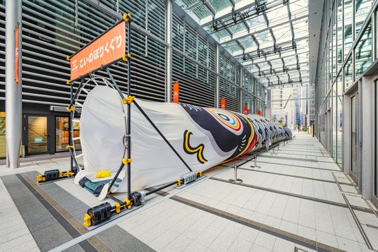 ┗長さ約25メートルの巨大なこいのぼりをくぐり、日本伝統の「端午の節句」の文化に触れる体験