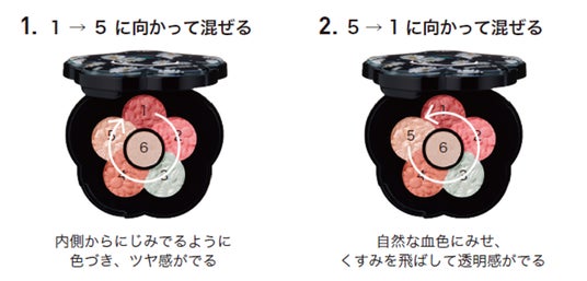 パレットはマットタイプとパールタイプの5色のチークと、ハイライト1色で構成し、理想的な血色感と立体感を叶えます。またパレットの混ぜ方によって発色や質感が変化し、何通りものバリエーションを楽しむことができます。