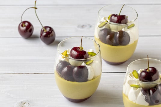 チェリーのピューレをつかった甘みと酸味のバランスが絶妙なキャラメルソースをグラスの底に敷き、その上にピスタチオペーストを合わせたなめらかなプリンを乗せています。トップには大粒のアメリカンチェリーとクレームシャンティを飾りました。グリーンとワインレッドのコントラストが華やかな、初夏を感じるベリーヌをお楽しみください。
