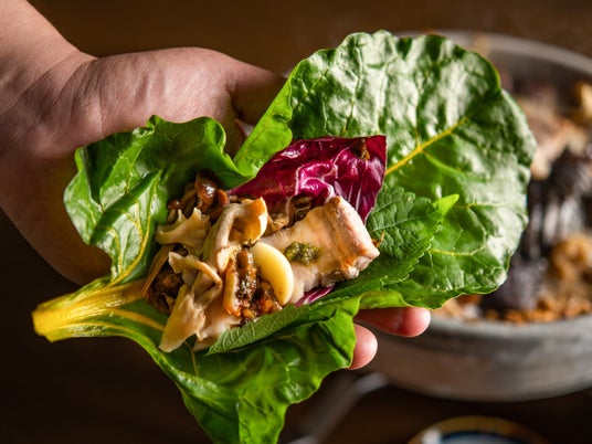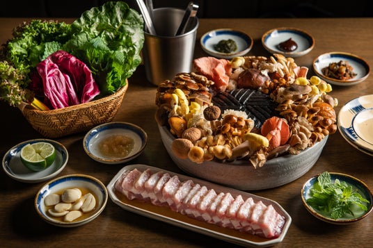 裏の山の木の子の定番であり一番人気の<きのこ火鍋>をサムギョプサルスタイルに替え、国産豚肉とたっぷりのきのこ、薬味を様々な包み野菜で巻いて味わえる期間限定のコースをお楽しみください。