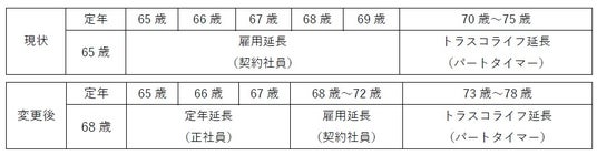 雇用延長制度とパートタイマー雇用年齢も引き上げます。