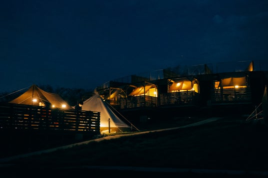 ディナー終了後、隣接するキャンプ&リゾート「花やさと山」の山頂に広がるサークルロッジやグランピングテントに宿泊すれば、満天に輝く星の下で、静寂と自然の美しさに包まれながら、ゆっくりした時を堪能でき、翌朝は開園前のフラワーパークを散策することもできます。