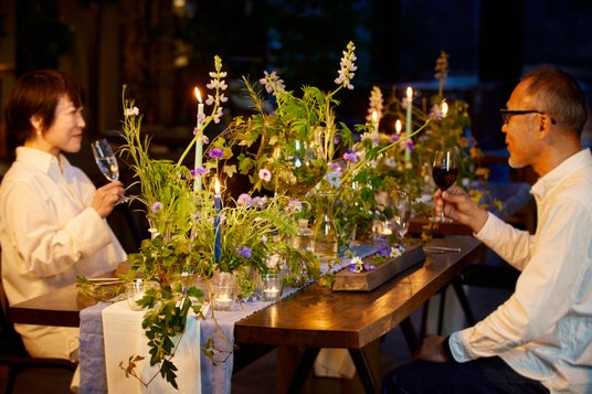 自分で摘んだお花を飾り、華やかに装飾されたレストランを閉園後、プライベートに楽しむディナータイム。