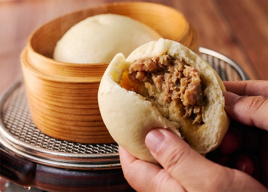 世界一の豚まんを目指し、国産豚肉を使った具材はたっぷりと、皮はふんわりと仕上がるように商品開発を行いました。味付けに甜麺醬(てんめんじゃん)を入れることで風味が豊かになりました。