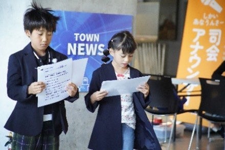 (写真左:郵便局員体験の様子 写真右:司会・アナウンサー体験の様子)