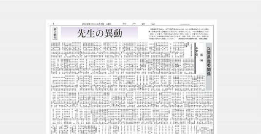 株式会社神戸新聞社(本社:兵庫県神戸市)は3月30日、WEBサイト「神戸新聞NEXT」で、兵庫県教委や各市教委(神戸、尼崎、西宮、伊丹、明石、姫路)が発表する2025年4月1日付人事異動(退職者は3月31日付)の内容がすぐに調べられる「先生の異動」検索サービスを公開します。