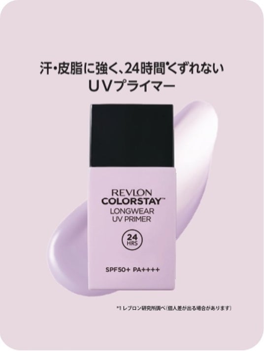 汗・皮脂に強く*⁴、24時間*⁵くずれない、超密着*²新UVプライマー『レブロン カラーステイ ロングウェア UV プライマー』(SPF50+・PA++++ UV耐水性★)全2色2,090円(税込)。
