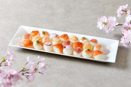 可愛いビジュアルで春の訪れにワクワクする気持ちを盛り上げてくれる一口サイズの手毬寿司。
