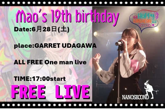 今回のワンマンは「Mao’s 19th birthday」と称され、6月に19歳の誕生日を迎える茉央の生誕祭となり、これまでリリースされた5曲に加え、新たな新曲4曲、そしてメンバー5人の各ソロ曲というデビュー間もないとは思えないほどのボリュームになる予定。
