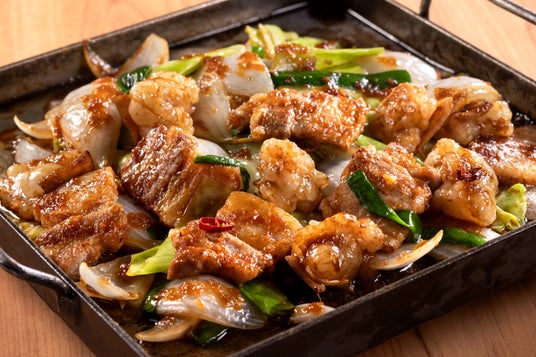 大とろホルモン鉄板焼き、春の限定は【新玉と豚バラの生姜焼き】(1人前1,100円)