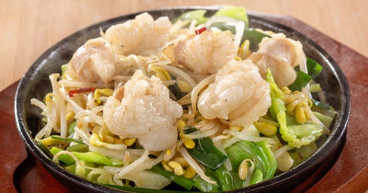 大とろホルモン鉄板焼き 新玉と豚バラの生姜焼き