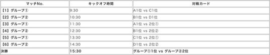 - 優勝決定戦および順位決定戦の決勝:PK方式により勝敗を決定する。PK 方式に入る前のインターバルは1分間とする。