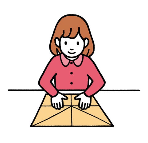特設サイトの手順に沿って、広告を折り「おかえり新聞 食卓カバー」を作る