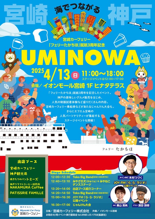 ■4月13日「フェリーたかちほ」就航3周年記念イベント「UMINOWA」、4月15日「フェリーたかちほ」就航日にステッカーを配布!