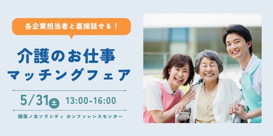 医療、介護、保育サービスなどを全国で提供する株式会社ニチイ学館(本社:東京都千代田区、代表取締役社長:森 信介)は、“介護の仕事に興味のある方”“介護の仕事を探している方”を対象とした介護職の合同就職イベント『介護のお仕事マッチングフェア』を5月31日(土) 13:00より、御茶ノ水ソラシティカンファレンスセンター(東京都千代田区)で開催いたします。