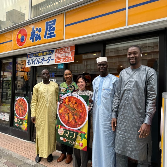 2024年11月、マフェのテスト販売時にセネガル大使館御一行様に松屋中目黒青葉台2丁目店にご来店頂きました。