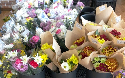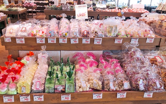 旬の野菜や果物、農産物を使用した加工品、惣菜やお弁当、地元の和菓子や洋菓子、生花など。