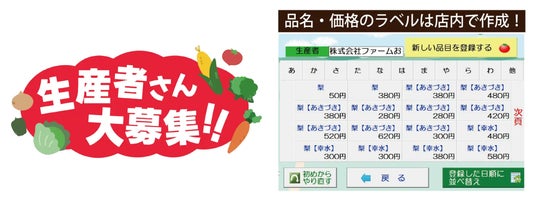 品種名や産地、価格などの商品情報が入ったラベルシールは店内で印刷可能。簡単な手続きで出品開始できますので、まずはお気軽にお声がけください!