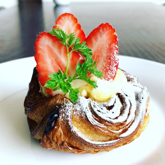 和歌山県産のいちご「まりひめ」を、サクサクのデニッシュの上にカスタードクリームと添えました。