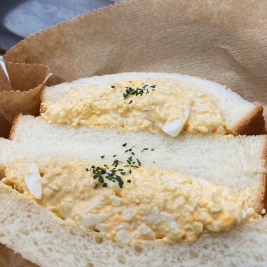 滋賀県のソウルフード、たくあんとマヨネーズをあえて、ふんわりしたコッペパンに挟んだサンド。