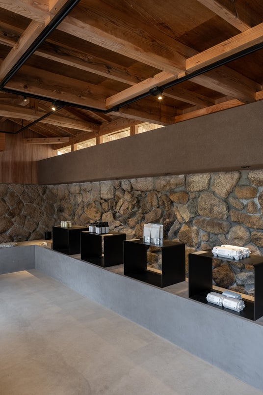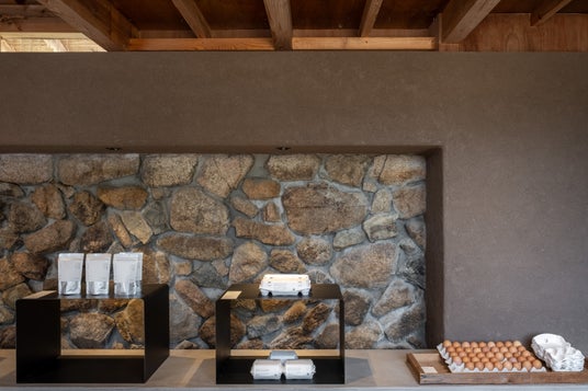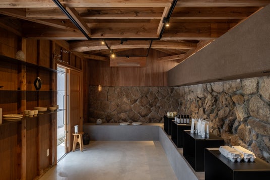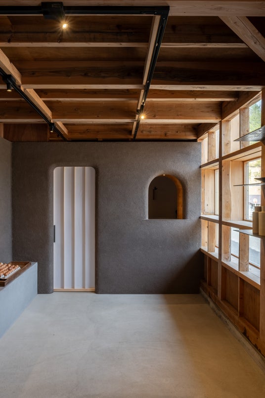 店舗空間では土・石・木・紙・鉄という自然素材と人の手によって生み出される素材を最大限に活かした構成となっています。木材が生産され、田畑の土で作物が実り、その基盤の上で人の暮らしが成り立つ様をメタファーとした空間体験となります。