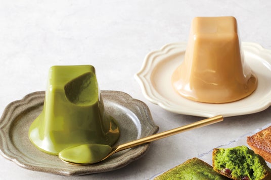 宇治抹茶や北海道産ミルクを使用し、口溶けなめらかに仕上げた「宇治抹茶のぷりん」と「ミルクキャラメルぷりん」