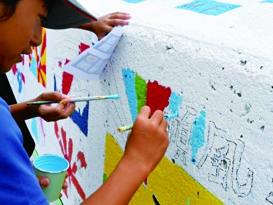 子ども・海人・地域住民が一緒になって豊見城市で唯一の漁港・与根漁港を舞台に、毎年テーマを変えて壁画を制作し10 年がかりで漁港内全ての壁を彩っていく2022 年始動の壁画アートプロジェクト。