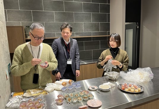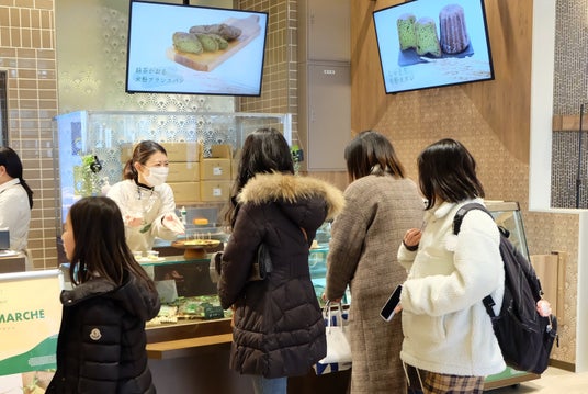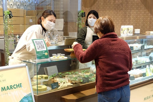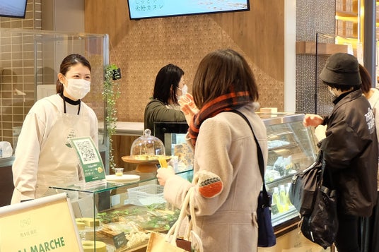 当社は錦町と『令和6年度オープンイノベーションによる新商品開発事業』における専門家として契約を締結し、エントリーされた地域の事業者とともに約半年間に渡り、錦町の新しい名産品の開発に取り組みました。本事業では錦町産の緑茶やお米を中心にスイーツやパンなどを開発し、2025年2月25日(火)~3月4日(火)の8日間、博多駅前にある博多マルイ1階イベントスペースにてポップアップストア「錦町みらいマルシェ」を開催し、テスト販売を行いました。開催中は福岡の人や九州エリアからの観光客、訪日観光客など多数の方が錦町の新しい商品を試食し、食を通じて錦町について知ってもらうことができました。
