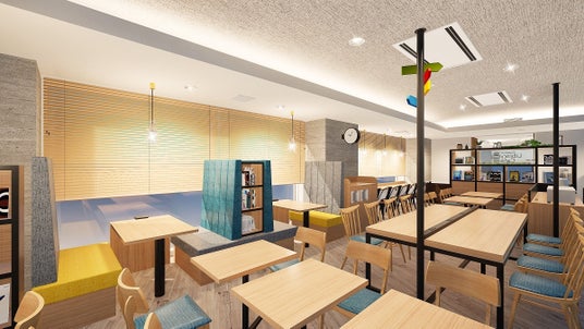 コンフォートホテル東京清澄白河では、旅を充実させる本を備えた、宿泊者が無料で利用できるスペース「Comfort Library Cafe(以下、ライブラリーカフェ)」を一新します。2名以上でのレジャー利用の宿泊者の増加やビジネスマンの働き方の変化に伴い、多様なニーズに応えるため、ライブラリーカフェ内に、壁に面した集中ブース、グループでの歓談や食事に利用できるビッグテーブルや見晴らしの良い窓際にBOX席を導入します。また、ビッグテーブルやBOX席に加え、ゆったりと過ごせるラウンジ席も設け、さまざまな時間帯に宿泊者が快適に過ごせる空間を提供します。