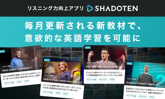 リスニング力向上アプリ「シャドテン」、毎月更新される新教材で、意欲的な英語学習を可能に