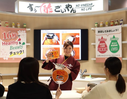 また現代社会では、生活習慣病の患者数増加が大きな課題となっております。生活習慣病の予防や改善に役立つと言われるお酢の効果効能についてより多くの方に知っていただき、日常生活に取り入れていただくことで社会課題の解決に貢献できればと考えております。当ブースでは、クイズやヘルシー&ビューティーチェックで、楽しみながらお酢の基礎や効果効能について体感していただく機会を提供し、皆様の健康に寄与いたします。クイズ参加者にはグッズ、全問正解のお酢マスターには別途特典をご用意しております。