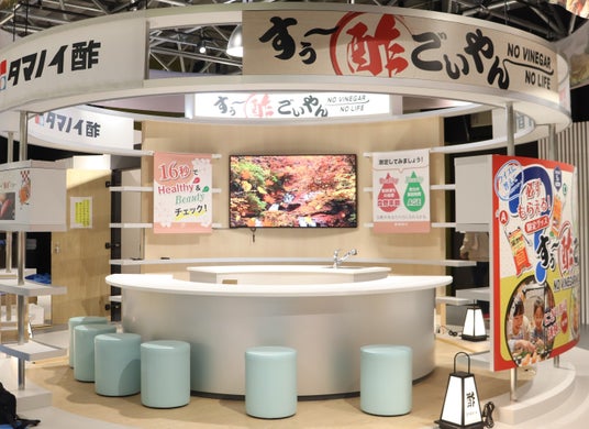 “すぅ~酢ごいやん NO VINEGAR NO LIFE"は2階体験ブースのテーマです。キャッチーなフレーズをテーマにすることで、より多くの方に興味を持っていただき、お酢の魅力や身近さ、大切さを広く発信できればと考えております。お酢が皆様の豊かな暮らしに役立つことを願っております。
