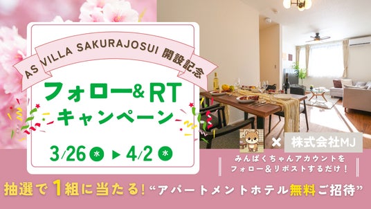 東京都心を中心にアパートメントホテルシリーズを企画・運営する株式会社MJ(本社:東京都台東区、代表取締役:井部源太)は、この度 閑静な住宅街の杉並区下高井戸(最寄り:世田谷桜上水駅)に、中長期滞在向き宿泊施設一軒家『AS VILLA SAKURAJOSUI』をオープンしました。開業記念として、抽選で無料宿泊権を1組へプレゼントいたします。